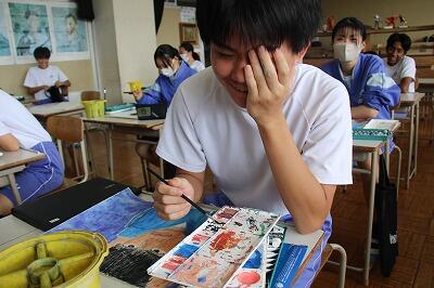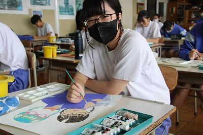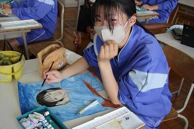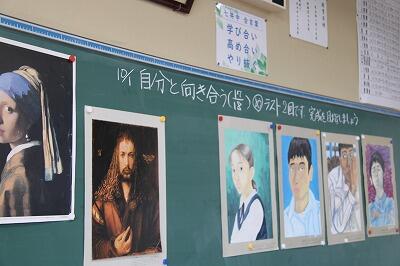 [4校時 3-1美術]自画像の制作に取り組んでいました。みんな上手に描けています!