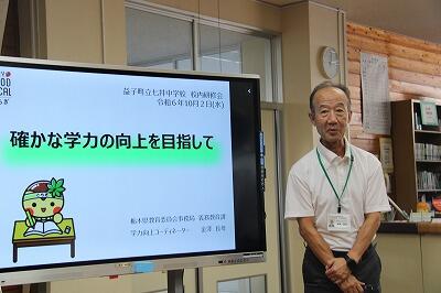 本日、生徒が帰宅した後に、学力向上コーディネーター金澤先生を講師としてお招きし、、保坂指導主事、柳指導主事のご参観のもと、「確かな学力の向上を目指して」をテーマに、教職研修を行いました。また、講話の後は、10月末に予定されている研究授業(1年2組数学、2年1組国語)の指導案検討会を行いました。生徒の学力向上のため、我々教職員一同、今後も研修に励んでいきたいと思います。