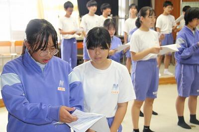 「合唱練習」昨日よりもさらにレベルアップ!声量、ハーモニーともすばらしい!クラスの和も深まっています!
