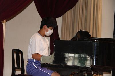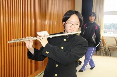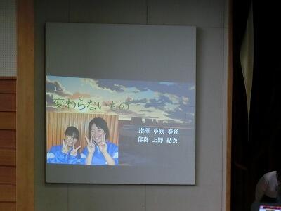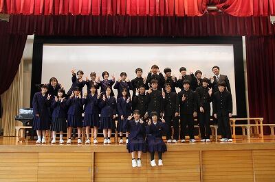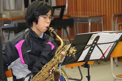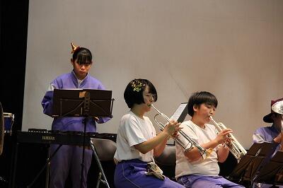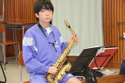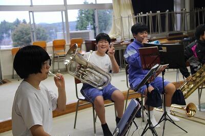 また、今回は町三中学校合同でも3曲演奏し、七井中セレクトの「キセキ」を部長が曲紹介しました。たくさんのメンバーで演奏している表情は、とても楽しそうでした。