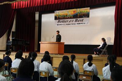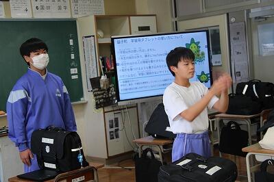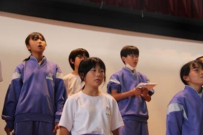 3年生は、川をきれいにするボランティアを通して、きれいになる川を見て感じた気持ち表現した。物事を継続する難しさを感じていたが、ボランティアが好きで継続できている。「継続は力なり」。今後も好きなことを見つけ、それを継続していきたい、ということを主張しました。