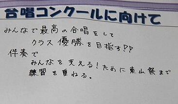 今週末の10/26(土)に行われる東山祭に向けて、各クラスとも合唱練習に熱が入ってきました。今日は昼休みと6校時に合唱練習がありましたが、どのクラスも数段に上達しています!本番が楽しみです!