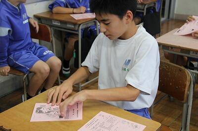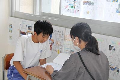 本日の6校時、前期通知表が担任の先生から生徒に渡されました。1年生にとっては中学校初めての通知表。生徒たちは担任の先生からアドバイスをいただきながら、気になる評定に見入っていました。保護者の皆様からも通知表から生徒のよい面、がんばった面をぜひ褒めていただき、さらに成長できるようにアドバイスをいただけますようお願いします!