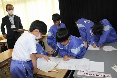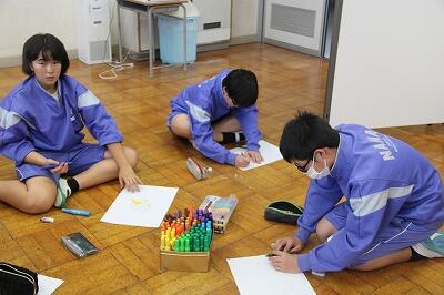 保健員会では、スローガンのデザインを決めていました。どの委員会も自分から進んで活動していました。