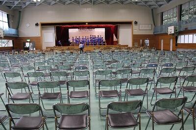 東山祭の準備が整いました。会場もできあがり、多くの保護者、地域の皆様にご参観いただけるよう、席もできる限り多く設定いたしました。席は自由席になっておりますが、多くの方が席に座れるよう、前からつめてお座りください。また、保護者、地域の皆様の入場は、8:25~8:35になっています。それまで体育館外の指定された場所でお待ちください。