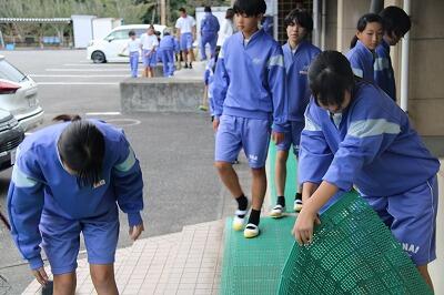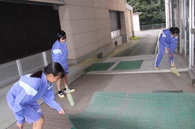準備の時間では、係を終えた生徒が各学年ごとに体育館周りの清掃を行いました。どの生徒も進んで清掃を行っていました。