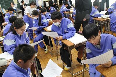 結果は、3年生が県出、1年生は県出とはなりませんでしたが、2名とも審査員を目の前にして、堂々と自分の思いを主張しました。