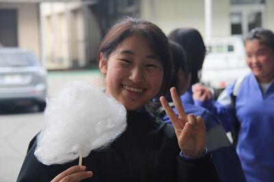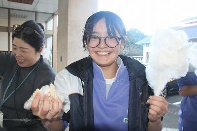 本日の綿あめづくり体験は1年1組でした!上手に大きく作れた生徒もいれば、なかなか思うようにいかずに小さくなってしまった生徒もいましたが、みんな笑顔でした!
