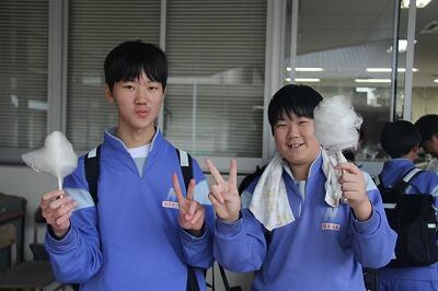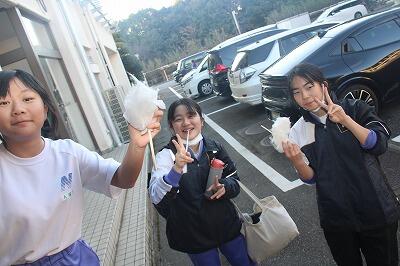 本日の綿あめ作り体験は2年2組。生徒は委員会活動を終えると、真っ先に綿あめ会場へ。みんなでおいしくいただきました!