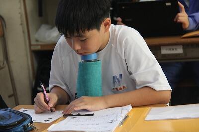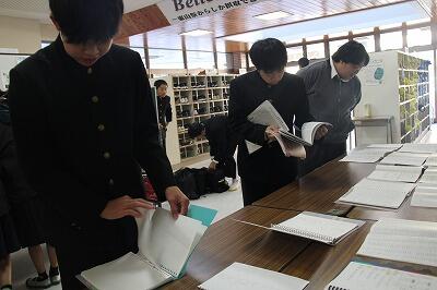 後期中間テストが約2週間後に迫ってきていますが、生徒たちに計画的な内容のある家庭学習を行ってもらいたいという趣旨から、学習指導担当者による「自主学習ノート展」が行われました。生徒たちは、友だちや先輩の自主学習ノートを閲覧しながら、どのような勉強をすればよいか、参考にしているようでした。自主学習ノート展で受けた刺激を今日からの家庭学習にいかしてもらいたいと思います。「継続は力なり」です!