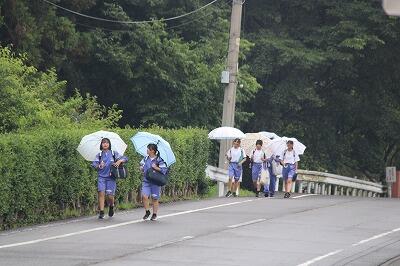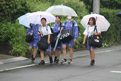 本日は水曜日、部活なしで下校の日です。朝方の雨が下校時にもまだ少し残っていましたが、カッパを着ないで下校する生徒もいました。かぜをひかないでくださいね。