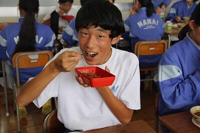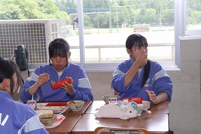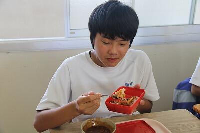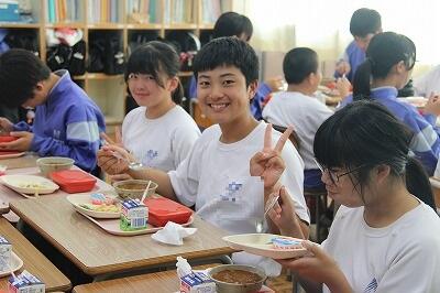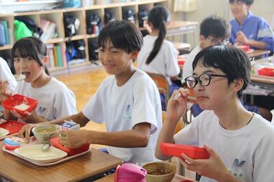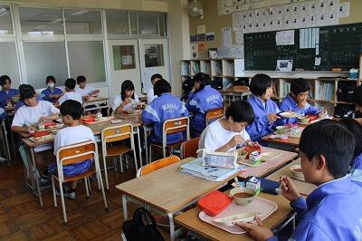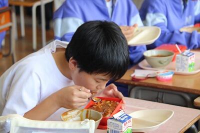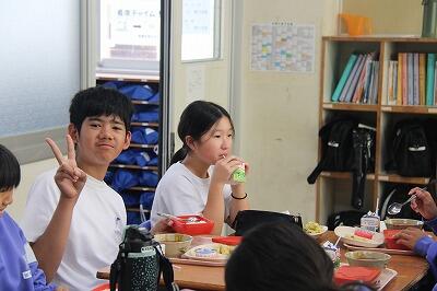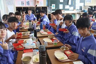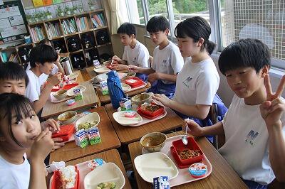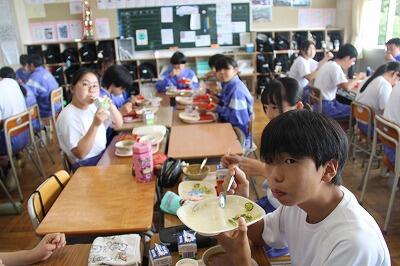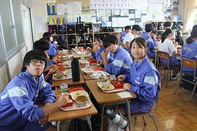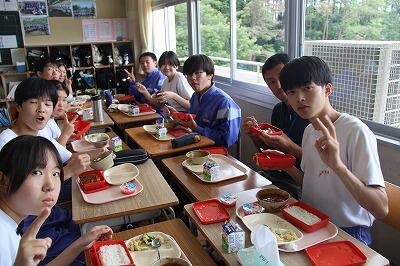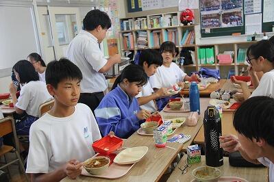 ここのところ雨の日が多く、蒸し暑い日が続いていますが、教室の中はエアコンが効いていてとても快適です。今日の給食は生徒がだいすきな「ハヤシライス」。どのクラスもほぼ完食です!ごちそうさまでした!