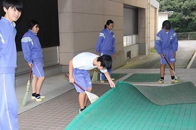準備の時間では、係を終えた生徒が各学年ごとに体育館周りの清掃を行いました。どの生徒も進んで清掃を行っていました。