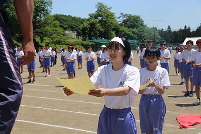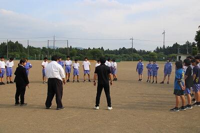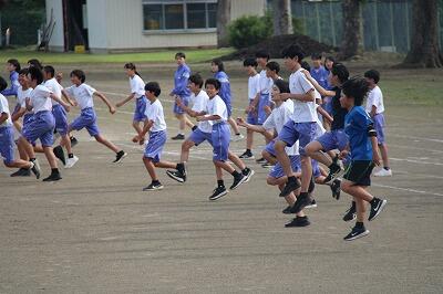 今日から郡市総体陸上競技大会に向けて、希望者による特設陸上部の練習が始まりました。今年度は希望者も多く、早朝練習による生徒、保護者、職員の負担を考慮し、昼休みに帰りの会を行って清掃の時間から練習を行う形をとっています。生徒は学校体制で練習環境を整えてもらっていることに感謝の心をもって、練習に真剣に臨んでいました。