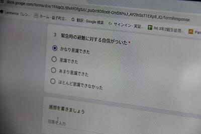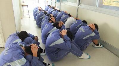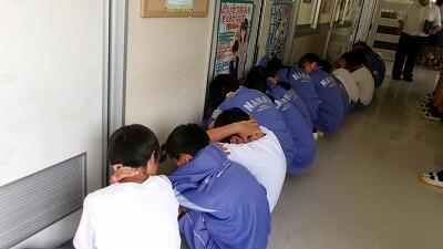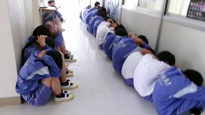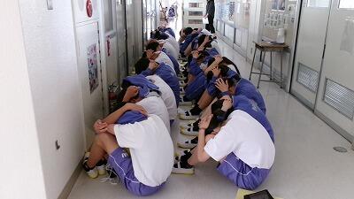 また、6校時終了後に竜巻避難訓練を行いました。2,3年生は昨年度も実施しているためか、スムーズに避難し、身を守るための姿勢(頭を守り、身をかがめる)を取ることができました。1年生は多少時間がかかりましたが、先生の指示に従って、隊形を作ることができました。