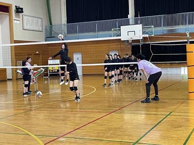 本日、星の杜高等学校女子バレーボール部監督コーチである森﨑健史先生のご指導をいただきました。森﨑先生は、Reve's 栃木(レーヴィス とちぎ)のキャプテンを務める現役のプロ選手です。練習で見せてくださるプレーにプロ選手のすごさを感じながら、生徒たちはたくさんの刺激を受けていました。また、星の杜の在校生で七井中の先輩も応援に来てくれました。