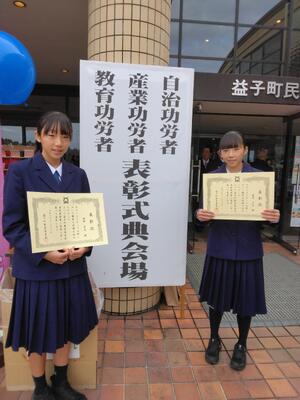 教育功労者表彰 スポーツの部で本校生徒2名が表彰されました。おめでとうございます。
