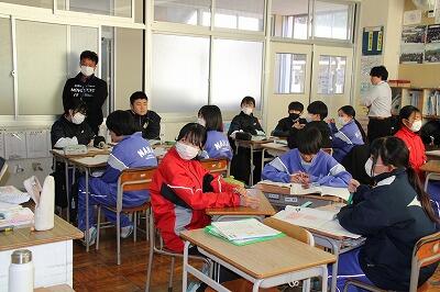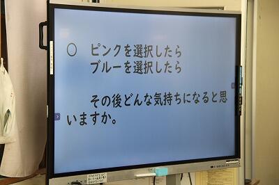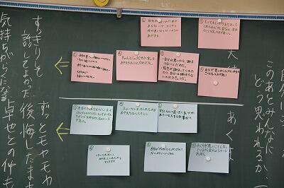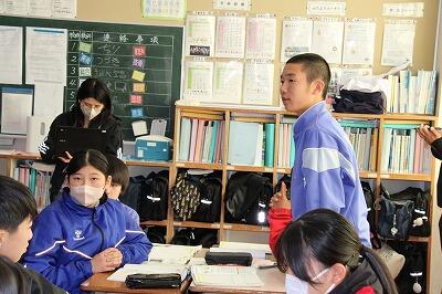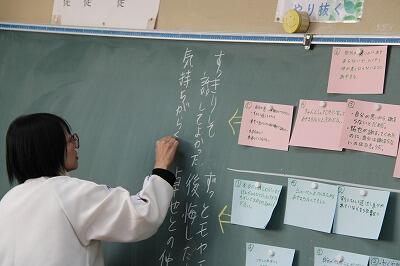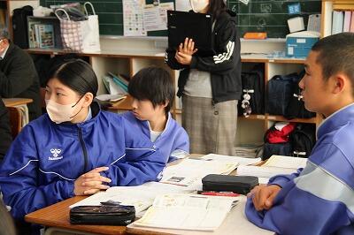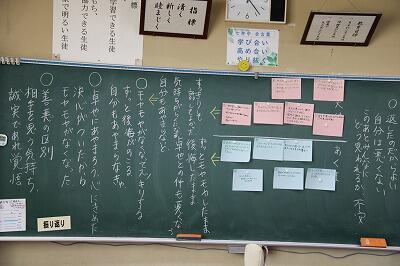 今週から全学級で、道徳の授業の相互授業参観を行っています。これは、道徳の授業を我々教職員が互いに参観し合い、指導力の向上を図ることをねらいとして実施しています。テーマは「考え、議論する道徳の授業の実践」。1年生の授業では、「銀色のシャープペンシル」を題材として、班ごとに活発な意見交換、話合いが行われ、ねらいとする価値に迫る発言も多くみられました。