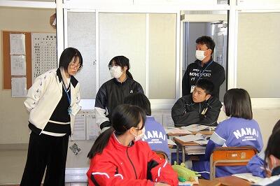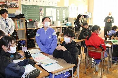 2年生の技術家庭の授業では、ミシンボランティアの方のご指導をいただき、1組が小物作りを行いました。