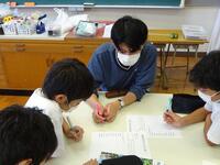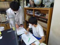 4校時は、理科の授業でした。「天気の変化」についての授業でした。天気図を使って日時を追うことで、低気圧や高気圧のの移動の方向などを話し合っていました。気圧のグラフと天気の記録を使って関係性を考察していました。