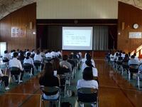 本日の5・6校時に3年生は進路説明会を行いました。保護者の皆様と一緒に進路についての説明を聞いてもらいました。郡内の県立高校の先生をお呼びして、各会場に分かれて各高校の説明も行いました。夏休みの1日体験が実施できなかった高校もあったので、貴重な時間だったと思います。今後の進路決定の参考になれば良いと思います。