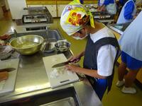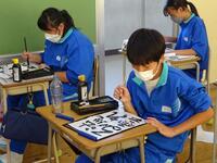 1年生の授業で、国語の書写と家庭科の調理の授業がありました。書写は、自分で選んだ課題を書く授業でした。丁寧に筆を運ぶ姿が見られ、上手に作品を作り上げていました。家庭科の授業では、包丁の使い方を学ぶためにダイコンを切る授業を行いました。自宅の手伝いで包丁を使っている生徒もいると思いますが、生徒は慣れない手つきで慎重に取り組んでいました。しかし、授業の雰囲気は楽しそうで、生き生きと取り組む姿がみられました。