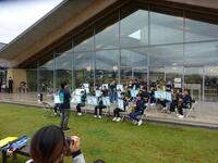 本日の午後、道の駅ましこ五周年祭のイベントに吹奏楽部が参加しました。雨天のため予定より1時間遅れでの演奏でしたが、多くの観客の前で演奏を披露できて大変良かったです。曲は、「学年天国」、「夢をかなえてドラエモン」「いくぞバイキンマン」、「アンパンマンのマーチ」、「全力少年」、「糸」でした。バイキンマンとアンパンマンの演出も楽しく、普段の練習の成果も発揮できた大変充実した発表でした。アンコールの声が出ましたが次の演奏者との関係でできなかったのが残念でした。
