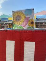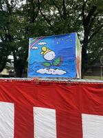 美術部が制作した絵が、ジャングルジムの上に飾られ、夏祭りを盛り上げてくれました。