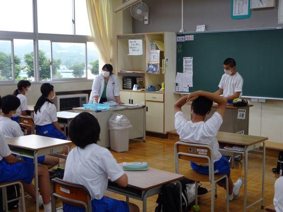 17日(金)の6校時に、給食センターに勤務している学校栄養士の方を講師に「食育」についての授業を行いました。生徒たちは、資料をもとに食の大切さについて学びました。