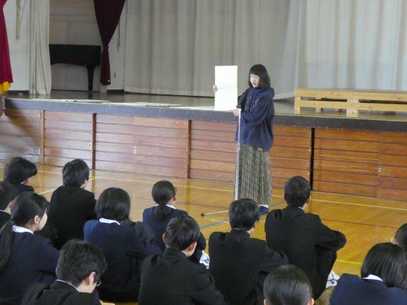 集会終了後は、絵本のまわりに生徒が集まるなど、本に対する関心が大いに高まり、ますます本好きな生徒が増えることと思います。