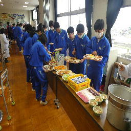 本日は、3年生対象のバイキング給食が実施されました。主食、主菜、副菜、デザート等全部で17品目が準備されました。生徒たちは、思いっきりの笑顔で会話を楽しみながら食事をすることができ、少々食べ過ぎてしまったようです。ご準備いただいた給食センターの皆様、大変ありがとうございました。これからも、田野中は、毎日完食を目指します。\(^o^)/