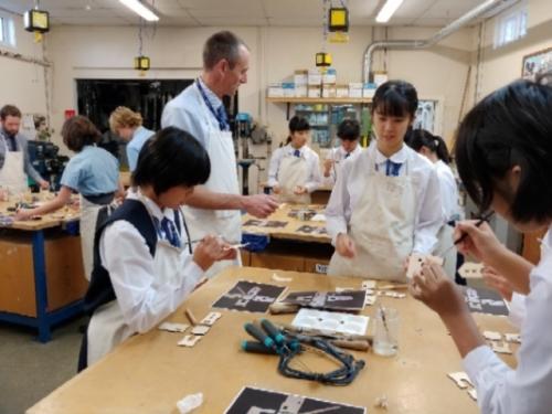セントアイブススクールの2日目です。まず、技術の授業でした。ポンプ小屋のペン立てを作りました。