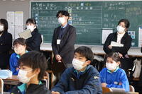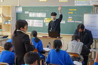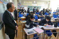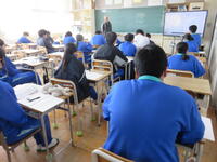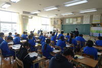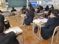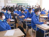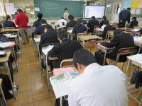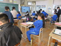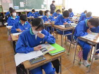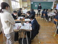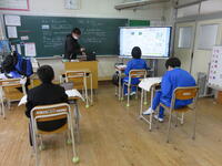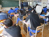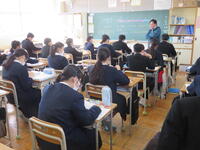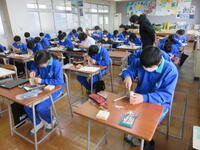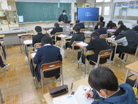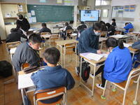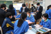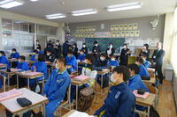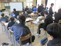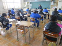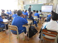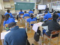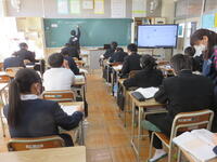 1月22日の5校時に1年1組で研究授業を行いました。県教育委員会や町教育委員会から多数の先生方が来校し、授業の様子を見てくださいました。小学校からも3名の先生方に成長の様子を見ていただきました。生徒はとても熱心に授業に取り組んでいたため、多くの先生方からお褒めの言葉をいただきました。