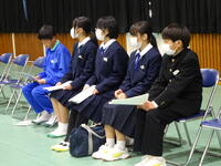 1年生は話をよく聞いていました。中学時代の部活動では、技術の向上はもちろんですが、それ以外にもいろいろなことが学べると思います。よく考えて選び3年間しっかり取り組んでほしいと思います。