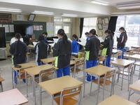 本日は降雪のために、清掃、部活動をカットし、15時45分下校としました。明日の朝も2時間カットし、10時登校としました。くれぐれも安全第一で登校してください。