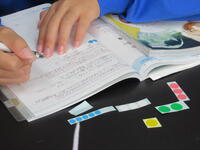 「①かっこをはずす、②項を並べかえる、③同類項をまとめる」という計算の仕方を学び、練習問題に一生懸命取り組んでいました。