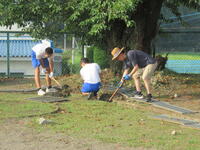 校庭の除草と側溝掃除に親子で取り組みました。学校環境が一層きれいに整いました。2学期を気持ちよく迎えられそうです。
