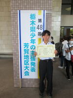 県少年の主張発表芳賀地区大会が、真岡いちごホールの小ホールで行われました。