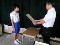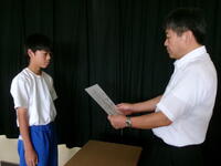 学級委員に任命された皆さん、皆さんはクラスの代表として、ぜひ自分の考えだけでなく、仲間の声に耳を傾けながら、クラスをしっかりまとめていってください。そして、皆さんが中心となって、クラス全員が「笑顔、感謝、挑戦」の3つの言葉を実現できるようにリーダーシップを発揮してくれることを期待しています。 県吹奏楽コンクール、少年の主張、ソフトテニス夏季研修大会、漢字検定、英語検定で表彰を受けた皆さん、おめでとうございます。これまでの努力が実を結び、成果として認められたことを心から讃えます。 |