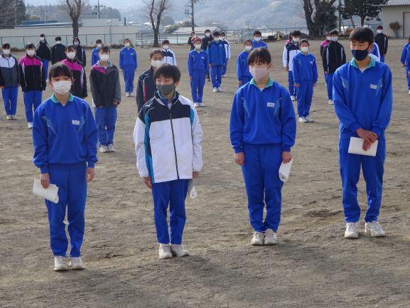 生徒会役員・学級委員任命 投稿日時 : 2021/01/18 teacher カテゴリ:今日の出来事 今日の全校集会は、生徒会役員・学級委員の任命式を行いました。コロナウイルス感染症対策として今回も校庭で間隔をとって行いました。最初に、学級委員、その後生徒会役員の任命を行いました。任命された生徒達は、堂々とした態度で校長先生から任命書を受け取っていました。今学期は、各学年とも進級・進学するための大切な学期です。学校のリーダー、クラスのリーダーとして頑張ってほしいと思います。 {{options.likeCount}} {{options.likeCount}}