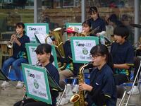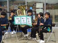 本日の午後、道の駅ましこ五周年祭のイベントに吹奏楽部が参加しました。雨天のため予定より1時間遅れでの演奏でしたが、多くの観客の前で演奏を披露できて大変良かったです。曲は、「学年天国」、「夢をかなえてドラエモン」「いくぞバイキンマン」、「アンパンマンのマーチ」、「全力少年」、「糸」でした。バイキンマンとアンパンマンの演出も楽しく、普段の練習の成果も発揮できた大変充実した発表でした。アンコールの声が出ましたが次の演奏者との関係でできなかったのが残念でした。