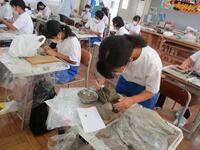 7月28日、29日、8月2日と美術部は陶芸教室を行っています。今年も伝統工芸士の先生を講師にお招きして実施しています。どんな作品ができるか楽しみです。写真は2日目の様子です。