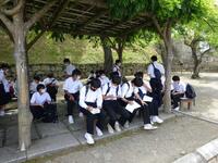 期末テスト2日目、1年生は初めての英語のテストになりました。生徒は、テスト前の休み時間に英語の見直しを意欲的に行っていました。テスト本番では、リスニングの問題に挑戦するなどしていました。