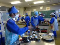 本日、1年1組、2組で調理実習を行いました。今回は「鮭のムニエルとスープ」でした。2回目の授業と言うことで生徒たちも慣れてきた様子で調理実習に取り組んでいました。試食で、食べた担任の先生も「大変おいしかった」と話していました。楽しく充実した実習になったと思います。