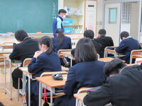 5校時、体育館で全校生徒に対して、交通安全教室が行われました。