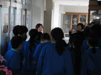 発声のための姿勢や息の出し方などを、学習しました。「丹田」に力を入れて、息をいきおい良く、強く出すのが、とても難しく、皆苦戦していました。先生のわかりやすい実演によって、時々笑いありの楽しい授業が展開されていました。