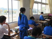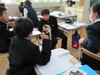 巻頭にある詩「生命は(吉野 弘)」の解釈を学習していました。思い思いに感じ取ったことを、堂々と発表していました。一人一人捉え方が異なり、友達の考えにうなづきながら、自分の考えと比べていました。