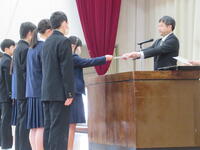 今朝の全校集会は、第1学期学級委員の任命式でした。