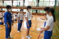 28日(水)朝会を行いました。以前、田野中学校で勤務されていた髙田公仕さんが、また本校で勤務していただけることになりました。よろしくお願いいたします。