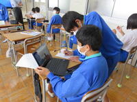 7月14日(木)の3校時は授業参観の予定でしたが、コロナ感染症の状況を考え、急遽中止とさせていただきました。御理解のほどよろしくお願いいたします。4校時は「親子学び合い事業」を生徒のみで実施しました。1年生は体育館で、2・3年生は各教室で参加しました。「ネット時代」を考える、とても有意義な時間でした。
